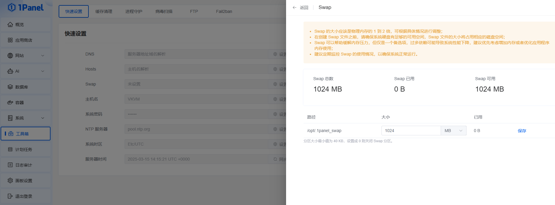 curl -sSL https://resource.fit2cloud.com/1panel/package/quick_start.sh -o quick_start.sh && bash quick_start.shSTEP 3. 创建SWAP分区