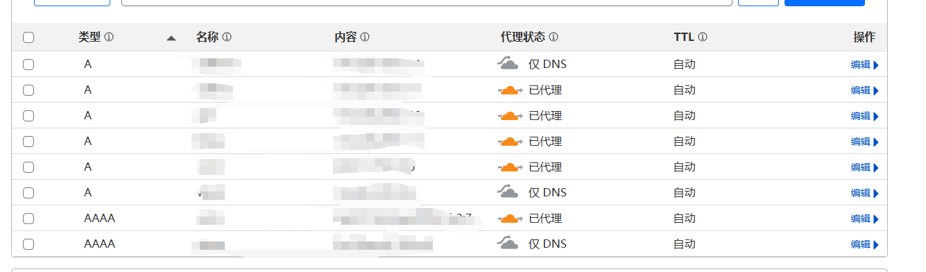 以下以 Cloudflare 为例,Cloudflare 启用 CDN 非常简单且优雅,直接打开 DNS 解析设置页,为解析记录启用「小黄云」就可以了。