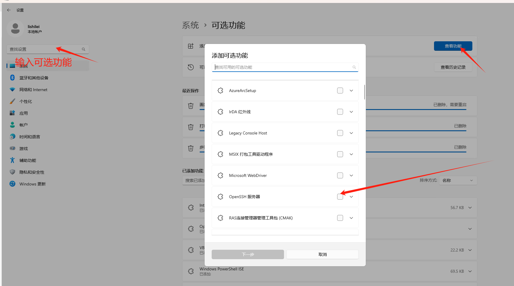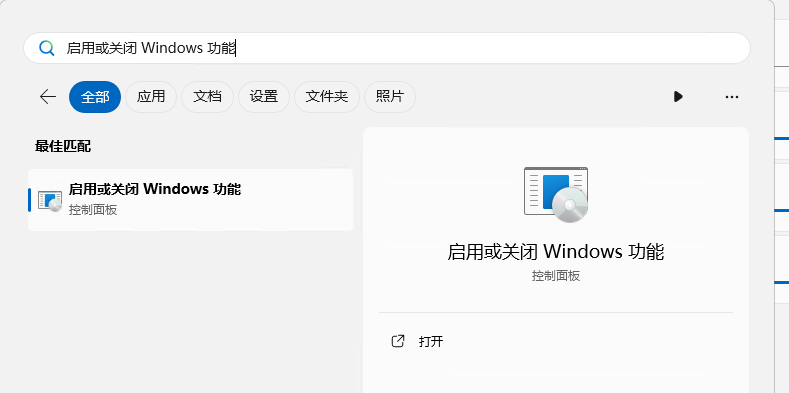 打开开始菜单,在开始菜单中输入 启用或关闭 Windows 功能,在弹出的窗口中勾选 虚拟机平台 和 适用于 Linux 的 Windows 子系统,确定之后重启系统。